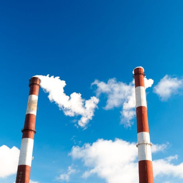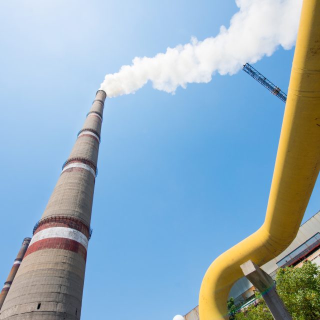 • Smoking chimney from a power plant