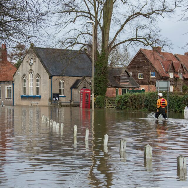 • A car being partially underwater in a flooded street