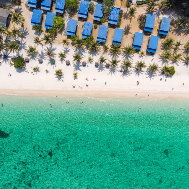 • A white 3D render of some artificial islands with buildings